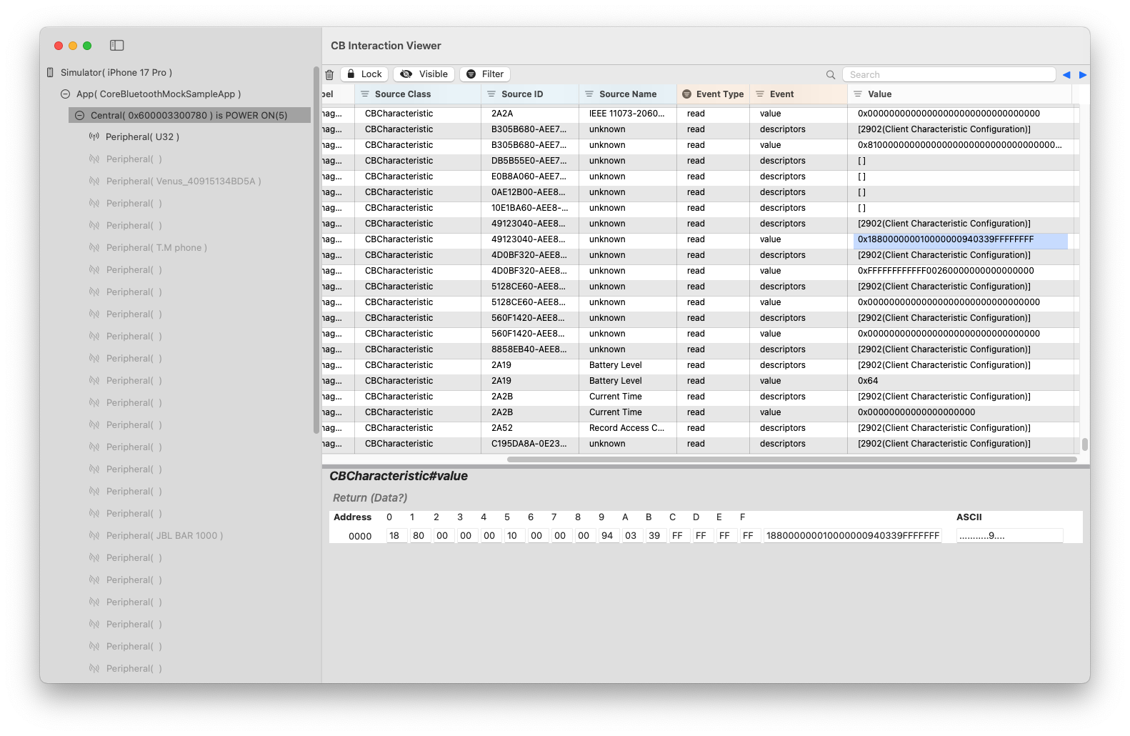 CB Interaction Viewer は、BLE 通信や CoreBluetooth の仕組みを学ぶ用途にも適しています。